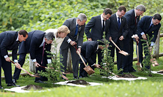| 8日,意大利總理貝盧斯科尼、英國首相布朗、德國總理默克爾、美國總統(tǒng)布什、日本首相福田康夫、法國總統(tǒng)薩科齊、俄羅斯總統(tǒng)梅德韋杰夫、加拿大總理哈珀和歐盟委員會(huì)主席巴羅佐(從左至右)在植樹典禮上。當(dāng)天,在日本洞爺湖出席八國峰會(huì)的領(lǐng)導(dǎo)人在峰會(huì)主會(huì)場溫莎飯店參加了一個(gè)植樹典禮。新華社/路透 | 舉世關(guān)注的八國集團(tuán)首腦會(huì)議9日在日本洞爺湖閉幕。 這次八國集團(tuán)首腦會(huì)議包括四個(gè)主要會(huì)議,即美國、英國、法國、德國、意大利、加拿大、俄羅斯和日本八國首腦同阿爾及利亞、埃塞俄比亞、加納、尼日利亞、塞內(nèi)加爾、南非、坦桑尼亞七個(gè)非洲國家領(lǐng)導(dǎo)人舉行的對話會(huì)、八國首腦獨(dú)自舉行的工作會(huì)議、八國首腦同中國、巴西、印度、南非、墨西哥五個(gè)發(fā)展中國家領(lǐng)導(dǎo)人對話會(huì)以及主要經(jīng)濟(jì)大國能源和氣候變化會(huì)議。 在三天的會(huì)期內(nèi),與會(huì)者討論了氣候變化、世界經(jīng)濟(jì)、能源和糧食安全、貿(mào)易、金融體系發(fā)展、非洲發(fā)展以及國際安全領(lǐng)域的一些問題。盡管與會(huì)者就當(dāng)前世界面臨的一些主要問題達(dá)成了一定共識,但并沒有取得多少突破。
