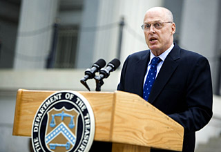 | 13日,在美國華盛頓,美國財(cái)政部長亨利·保爾森向媒體發(fā)表聲明,美國財(cái)政部和聯(lián)邦儲備委員會宣布出手救助陷于資金困境的美國最大兩家住房抵押貸款融資機(jī)構(gòu)——房利美和房地美。新華社/路透 | 美國財(cái)政部長亨利·保爾森20日連趕兩場電視訪談節(jié)目,談?wù)撁绹?jīng)濟(jì)發(fā)展前景、金融市場現(xiàn)狀和近來陷入麻煩的住房抵押貸款融資機(jī)構(gòu)房利美和房地美。 保爾森在訪談中說,美國經(jīng)濟(jì)的“艱難時光”仍將持續(xù)數(shù)月。