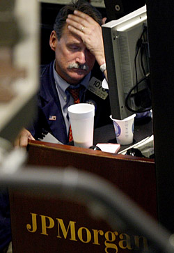 | 21日,一名交易員在美國紐約證券交易所內(nèi)工作。盡管信貸市場有進一步解凍的跡象,但因投資者對上市公司盈利前景感到擔憂,當日紐約股市三大股指再次大幅下挫。新華社/路透 | 為支持貨幣市場投資者并緩解短期債務(wù)市場承受的巨大壓力,美國聯(lián)邦儲備委員會(美聯(lián)儲)于當?shù)貢r間21日宣布了一項新的融資計劃。根據(jù)該計劃,美聯(lián)儲將向深受投資者撤資困擾的貨幣市場基金提供最多5400億美元的貸款,這是它為提振脆弱的信貸市場而采取的又一舉措。
