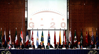 攝 | 二十國(guó)集團(tuán)財(cái)政部長(zhǎng)和中央銀行行長(zhǎng)2008年年會(huì)8日在巴西圣保羅開幕,與會(huì)代表紛紛呼吁國(guó)際社會(huì)協(xié)調(diào)一致,共同應(yīng)對(duì)國(guó)際金融危機(jī)。 由于這次年會(huì)是閉門會(huì)議,外界對(duì)于會(huì)議所討論的議題猜測(cè)頗多。一些代表在會(huì)場(chǎng)外透露,在全球范圍內(nèi)降低利率以減少金融危機(jī)帶來的損失,是年會(huì)的一個(gè)重要議題。