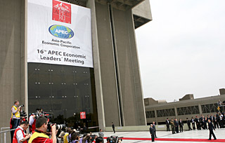 | 圖為亞太經(jīng)合組織第十六次領導人非正式會議會場。新華社記者 張傳奇