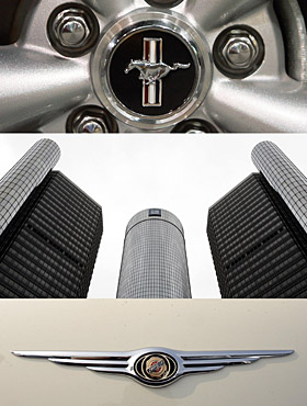 | 圖為拼版照片,顯示了2006年10月14日在美國邁阿密拍攝的2007年款福特野馬汽車的標(biāo)志(上),2006年7月12日拍攝的位于美國底特律的通用汽車總部(中)和2007年5月14日在美國邁阿密拍攝的克萊斯勒汽車的標(biāo)志。新華社/法新 | 經(jīng)過馬拉松式的艱苦談判,美國國會民主黨議員與白宮官員9日晚就總額150億美元的汽車業(yè)救援方案達(dá)成原則一致,美國汽車業(yè)因而將成為近來繼金融業(yè)之后第二個(gè)得到政府救助的行業(yè)。 該協(xié)議最快可望在10日送交國會表決。但據(jù)參與談判的官員透露,由于一些共和黨議員仍對一些具體條款持有異議,該原則能否在國會通過還存在變數(shù)。
