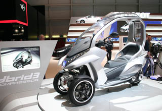 | 法國(guó)標(biāo)致混合動(dòng)力輕便摩托車(chē)概念車(chē),前輪電力、后輪汽油驅(qū)動(dòng)。 |