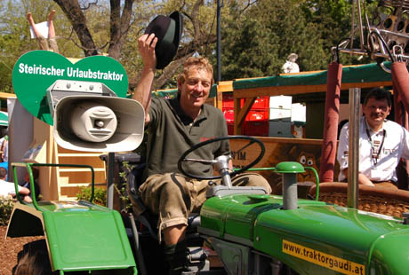 22日,在奧地利維也納,一名參觀者在一年一度的施泰爾馬克州旅游宣傳周活動上試開拖拉機。施泰爾馬克州地處奧地利南部山區(qū),是奧地利的傳統(tǒng)農(nóng)業(yè)州。該州充分利用當?shù)孛利惖淖匀伙L(fēng)光資源,大打特色旅游,使旅游業(yè)也成為當?shù)氐闹匾?jīng)濟支柱產(chǎn)業(yè)。