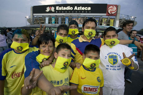9日,觀眾進(jìn)入阿茲臺(tái)克球場。當(dāng)日,在墨西哥城阿茲臺(tái)克球場,舉行了墨西哥聯(lián)賽美洲鷹隊(duì)對(duì)阿美利加隊(duì)的比賽。墨足協(xié)7日宣布,鑒于目前國內(nèi)甲型H1N1流感疫情趨于平穩(wěn),各類職業(yè)足球賽事恢復(fù)對(duì)球迷開放。新華社發(fā)