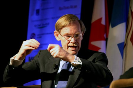 8日,在加拿大蒙特利爾,世界銀行行長佐利克在第15屆美洲國際經(jīng)濟論壇的午餐會上發(fā)表講話。新華社記者楊士龍攝 |