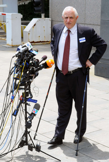 “龐氏騙局”主犯麥道夫6月29日被判150年監(jiān)禁———麥道夫詐騙案受害者在法庭外接受記者采訪。(新華社發(fā)) |