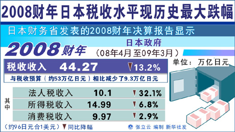 2008財年日本稅收水平現(xiàn)歷史最大跌幅