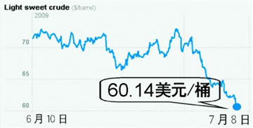 進入7月以來,國際油價接連下挫。受美國商業(yè)汽油庫存不斷增加和利空經(jīng)濟預測的影響,8日國際油價已連續(xù)第六個交易日下跌,累計跌幅接近16%,紐約和倫敦兩市的油價均收于每桶61美元以下。