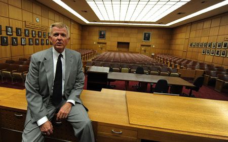 15日,美國(guó)加利福尼亞州(加州)洛杉磯高等法院法官坐在空曠的審判廳里。當(dāng)天,加州各法院關(guān)門不審理大部分案件。加州目前面臨高達(dá)263億美元的財(cái)政預(yù)算缺口。為彌補(bǔ)這一缺口,加州政府被迫采取了一系列措施,包括發(fā)放政府借據(jù)、裁員以及強(qiáng)制休假等。其中,法院也在未來(lái)12個(gè)月內(nèi)每月關(guān)門一天,以節(jié)省開(kāi)支。