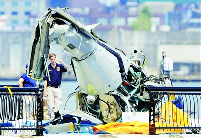 美國紐約哈得孫河失事直升機殘骸