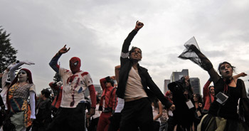 29日,在墨西哥首都墨西哥城革命紀(jì)念碑前的廣場上,一萬多名邁克爾·杰克遜的歌迷和著杰克遜經(jīng)典歌曲《顫栗》的旋律,模仿杰克遜的舞步,創(chuàng)造了新的同時跳《顫栗》舞蹈人數(shù)最多的吉尼斯世界紀(jì)錄。墨西哥城政府新聞官赫蘇斯·拉姆賽斯說,截至當(dāng)天下午6點(diǎn),超過5萬名杰克遜歌迷參加了此次紀(jì)念活動,同時跳《顫栗》舞蹈的人有12937人。