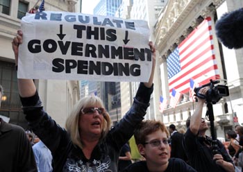 民眾聚集華爾街關(guān)注金融危機(jī)一周年。9月14日,在美國紐約華爾街的聯(lián)邦大廳外,一名抗議者手舉“華爾街首先應(yīng)該進(jìn)行改革”的標(biāo)語。新華社記者 劉欣