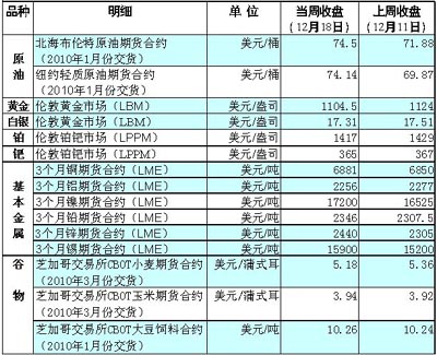 受美國商業(yè)原油和成品油庫存下滑幅度超過市場預期、世界兩大產(chǎn)油國伊朗和伊拉克關(guān)系緊張等因素影響,當周國際油價除第一個交易日下跌外,其余交易日震蕩上行,并重返每桶70美元之上。 油價走強并未帶動金價上升。受美元走強影響,當周國際金價震蕩收低。周中,繼惠譽之后,標準普爾評級公司也將希臘的主權(quán)評級由“A-”下調(diào)至“BBB+”,加之英國公布的零售數(shù)據(jù)疲軟,投資者涌入美元市場尋求避險,黃金的保值吸引力遭到嚴重削弱。 倫敦金屬交易所基本金屬價格漲多跌少。鋁的庫存達到463.7萬噸以上的創(chuàng)紀錄水平,價格受到打壓。10月份全球鉛的銷量同比增加8.9%,其中中國增加35%。抵消了其他地區(qū)銷量的下降,鉛價和鋅價當周漲至2008年5月來最高水平。 芝加哥期貨交易所大豆期貨價格最近漲幅可觀,周中更是一度逼近4個月來高點。
