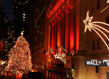 圣誕樹、霓虹彩燈等圣誕景觀給美國紐約華爾街帶來濃濃的節(jié)日氛圍。新華社記者 申宏