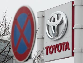這是2月4日在奧地利維也納一處豐田汽車銷售店外拍攝的豐田汽車標志牌。新華社/路透 |