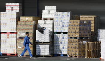 在日本東京的一個工業(yè)區(qū),一名工人從一個倉庫前走過。新華社/路透 |