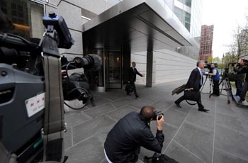 4月16日,在美國(guó)紐約曼哈頓,記者在高盛集團(tuán)總部外采訪。當(dāng)日,美國(guó)證券交易委員會(huì)向紐約曼哈頓聯(lián)邦法院提起民事訴訟,指控高盛集團(tuán)在涉及次級(jí)抵押貸款業(yè)務(wù)金融產(chǎn)品問(wèn)題上涉嫌欺詐投資者。新華社記者