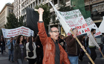 4月27日,在希臘首都雅典,希臘民眾示威抗議政府申請啟動歐盟-IMF救助機制,反對采取更嚴厲的緊縮政策。新華社發(fā)(馬里奧斯·羅洛斯