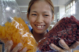 作為中國-東盟自由貿(mào)易區(qū)的投資合作平臺,中國-東盟經(jīng)濟園區(qū)已成為中國和東盟 客商的投資熱土。圖為森景園食品有限公司的工人在展示綠色環(huán)保食品。本報記者