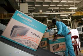 1996年10月,海信集團南非公司成立,海信在海外的第一個生產(chǎn)基地——年產(chǎn)10萬臺彩電和黑白電視機的工廠開工生產(chǎn)。近年來,海信在南非市場的占有率一直保持在12%以上。本報記者