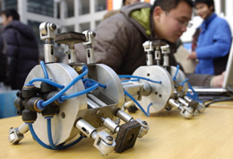 1月5日,一名學(xué)生通過電腦演示他和同學(xué)設(shè)計的“氣動機(jī)器人”。當(dāng)日,南京東南大學(xué)舉行本科生科技創(chuàng)新成果展示會,共展出250多項科技創(chuàng)新成果。近年,東南大學(xué)推出“大學(xué)生科研訓(xùn)練計劃”,學(xué)校設(shè)立專項基金,制定創(chuàng)新學(xué)分認(rèn)定等政策鼓勵學(xué)生創(chuàng)新,從2004年至今,全校本科生從事的各類科技創(chuàng)新項目約達(dá)3000項。(本報資料照片) |