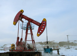 | 西部最大的油田克拉瑪依油田使用的"雙驢頭"采油機 |