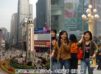 不足一平方公里的面積,日均人口流量超過(guò)30萬(wàn),有4400多家商業(yè)網(wǎng)點(diǎn),20多家大型商場(chǎng),近百個(gè)金融網(wǎng)點(diǎn)和證券交易所,還有500多家餐飲賓館、休閑娛樂(lè)、信息中介等社會(huì)服務(wù)場(chǎng)所,年商貿(mào)銷售總額超過(guò)200億元,雄踞西部榜首…… 這不是虛構(gòu)的繁華勝地,而是寸土寸金的重慶解放碑商業(yè)街。 從1981年開(kāi)始,重慶電視臺(tái)多次用飛機(jī)航拍山城重慶,地處城市中心的解放碑一直是必拍項(xiàng)目。在重慶直轄前,即使從空中俯瞰,高度27.5米的解放碑也是十分醒目的“地標(biāo)”,它的周圍環(huán)抱著大片低矮、灰暗的建筑。重慶直轄后,航拍的攝像師漸漸發(fā)現(xiàn),隨著高樓不斷冒出,空中尋找解放碑變得困難了。進(jìn)入21世紀(jì)后,解放碑迅速被淹沒(méi)在林立的高樓中,數(shù)十棟超高層建筑形成了新的天際線,一位航拍攝像師再次飛臨解放碑上空時(shí),難以抑制心情的激動(dòng),用電話向領(lǐng)導(dǎo)報(bào)告說(shuō):“我們到了‘曼哈頓’了……” 十年間,解放碑從一個(gè)彈丸之地,神奇地變成了集商貿(mào)、旅游、購(gòu)物、餐飲、娛樂(lè)、休閑和金融等諸多功能于一體,聚八方人流、物流、資金流的“西部第一街”。解放碑的“神”在于它的多樣性和包容性,其密度之密、業(yè)態(tài)之全、人氣之旺、財(cái)力之雄,令人驚嘆。解放碑匯聚了“西部商貿(mào)五個(gè)之最”——西部最大的零售商、西部最大的批發(fā)商、西部最大的零售超市、西部最高檔次的商務(wù)機(jī)構(gòu)以及全國(guó)醫(yī)藥行業(yè)最大的零售連鎖企業(yè),還有300多家著名的餐飲網(wǎng)點(diǎn),70多個(gè)金融機(jī)構(gòu),10多家星級(jí)賓館,20多家世界五百?gòu)?qiáng)企業(yè)的辦事機(jī)構(gòu)等。這是重慶直轄市創(chuàng)造的奇跡,折射出一個(gè)最年輕直轄市飛速發(fā)展的軌跡。 解放碑原名“抗戰(zhàn)勝利紀(jì)功碑”,完全為木結(jié)構(gòu),始建于抗戰(zhàn)期間,是重慶作為中國(guó)抗戰(zhàn)大后方的戰(zhàn)時(shí)首都和世界反法西斯東方戰(zhàn)場(chǎng)指揮中心的歷史見(jiàn)證。1950年,更名為“人民解放紀(jì)念碑”。這個(gè)位于重慶市中區(qū)的標(biāo)志性建筑,后逐漸演變成以解放碑為中心,方圓0.95平方公里的商貿(mào)區(qū)的代稱。 解放碑商業(yè)步行街建設(shè)幾乎是與重慶直轄同步的。十年前,重慶直轄市正式成立,解放碑商業(yè)步行街也開(kāi)始笑迎八方來(lái)客。為了打造這一現(xiàn)代商貿(mào)區(qū),重慶市拆除了具有40年歷史的大陽(yáng)溝棚戶市場(chǎng)和有20年歷史的五一路農(nóng)貿(mào)市場(chǎng),對(duì)這一地區(qū)進(jìn)行有史以來(lái)最大規(guī)模的改造:建設(shè)新的電訊電纜網(wǎng)絡(luò),可滿足未來(lái)50年的需要;鋪設(shè)輸氣管道,從根本上解決了解放碑地區(qū)氣源短缺的問(wèn)題;市政設(shè)施按國(guó)際大都會(huì)標(biāo)準(zhǔn)進(jìn)行…… 彈丸之地的解放碑是充滿活力、生機(jī)與魅力的新重慶縮影。解放碑一直引領(lǐng)著重慶的時(shí)尚潮流,充分展現(xiàn)了其作為西部購(gòu)物消費(fèi)樂(lè)園的巨大魅力。 漫步在繁華的解放碑,沿著時(shí)尚的坐標(biāo),猶如走進(jìn)了消費(fèi)的天堂,吃、住、娛、購(gòu)、游幾大要素一一齊備。眾多的大型綜合商場(chǎng)和特色專賣店令人眼花繚亂,多家星級(jí)酒店可提供住宿和商務(wù)洽談,“好吃街”上的餐館讓你品嘗南北風(fēng)味,累了還可以逛逛書(shū)店,泡泡茶館,欣賞長(zhǎng)江、嘉陵江兩江盛景。難怪有人說(shuō):“在解放碑,沒(méi)有買不到和玩不到的,只有你想不到的! 解放碑的生機(jī)與活力,常常讓外來(lái)者產(chǎn)生錯(cuò)覺(jué):見(jiàn)縫插針的高層建筑、一家挨一家的金融機(jī)構(gòu),恍若曼哈頓;摩肩接踵的匆忙人群,令人眼花繚亂的購(gòu)物商場(chǎng),又恍若香港。當(dāng)亞洲議會(huì)和平協(xié)會(huì)(AAPP)第三屆年會(huì)2002年在重慶舉行時(shí),大部分第一次走進(jìn)中國(guó)西部城市的亞洲各國(guó)國(guó)會(huì)議會(huì)領(lǐng)導(dǎo),都驚嘆于解放碑的繁華與富庶。柬埔寨國(guó)民議會(huì)主席拉那烈的夫人瑪麗王妃說(shuō):“真沒(méi)想到中國(guó)西部還有這么一塊可愛(ài)的土地,在這里生活的人民很幸運(yùn)!” 根據(jù)規(guī)劃,解放碑商貿(mào)區(qū)的目標(biāo)是建設(shè)成為西部知名度最高、實(shí)力最強(qiáng)的中央商務(wù)區(qū),通過(guò)產(chǎn)業(yè)功能培育、設(shè)施載體構(gòu)建、景觀形象提升等措施,建設(shè)成為最具活力和影響力的集聚點(diǎn)和輻射源,成為最具魅力和品位的現(xiàn)代都市標(biāo)志。 |