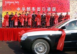 華晨與德國(guó)HSO公司簽署的15.8萬(wàn)輛中的首批,也是中國(guó)自主品牌汽車首次大批量出口歐洲。圖為在沈陽(yáng)舉行的中華轎車出口德國(guó)的發(fā)車儀式。 新華社發(fā)(楊新躍