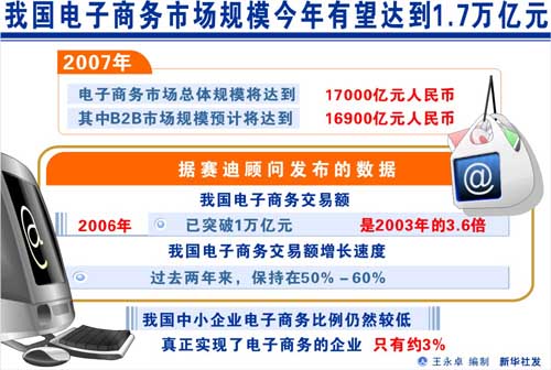 此次兩大電子商務(wù)巨頭交鋒的主戰(zhàn)場(chǎng)是在行業(yè)網(wǎng)站,據(jù)最新的數(shù)據(jù)統(tǒng)計(jì),中國(guó)行業(yè)網(wǎng)站已經(jīng)超過(guò)了2000家,2006年總體的服務(wù)收入超過(guò)了100億元,就業(yè)人數(shù)超過(guò)了12萬(wàn)人。艾瑞市場(chǎng)咨詢機(jī)構(gòu)曾預(yù)測(cè),2007年,中國(guó)電子商務(wù)市場(chǎng)總體規(guī)模將達(dá)到17000億元,其中B2B市場(chǎng)規(guī)模預(yù)計(jì)將達(dá)到16900億元人民幣,而行業(yè)網(wǎng)站已經(jīng)成為電子商務(wù)發(fā)展的主力軍。