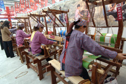 陜西咸陽(yáng)一家土布工藝公司在“西洽會(huì)”上展示土織布制作過(guò)程,以期吸引客商,尋覓大市場(chǎng)。 本報(bào)記者:焦衛(wèi)平