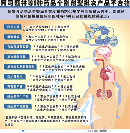 阿司匹林等9種藥品個別劑型批次產(chǎn)品不合格