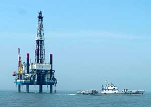 河北邊防海警在冀東油田海域巡邏。 本報記者 楊世堯