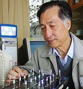 佛山市國(guó)星光電科技公司通過與蘇鏘院士領(lǐng)銜的工作室合作,其成果已成功地在廣東省關(guān)鍵領(lǐng)域重點(diǎn)突破項(xiàng)目和省重大科技項(xiàng)目招標(biāo)中中標(biāo),并開展了佛山市第一個(gè)國(guó)家“863”計(jì)劃引導(dǎo)項(xiàng)目——大功率白光LED器件產(chǎn)業(yè)化關(guān)鍵技術(shù)研究與開發(fā)。圖為蘇鏘院士在實(shí)驗(yàn)室。
