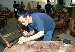 據(jù)龍順成中式家具廠廠長寇穎躍介紹,龍順成是享譽(yù)京城的百年老字號,始創(chuàng)于1862年,是與“蘇作”、“廣作”齊名的“京作”硬木家具的代表品牌,在當(dāng)時的家具行中被稱為“官窯”,是為清代宮廷制作家具的機(jī)構(gòu)。 作為“京作”家具風(fēng)格的代表,龍順成的獨(dú)特制作技藝傳承了明清造型、榫卯結(jié)構(gòu)和燙蠟工藝等三項(xiàng)特征,使龍順成家具不僅具有實(shí)用價值,而且具有很高的藝術(shù)性與收藏價值。 古舊家具修復(fù)也被稱為“舊活”。價值,創(chuàng)新老字號經(jīng)營之路”的“我們以前一年只能修復(fù)幾十件‘舊活’,現(xiàn)在是認(rèn)認(rèn)真真地把這件事情當(dāng)作一項(xiàng)工程來做。我們的目標(biāo)是在一年內(nèi)修復(fù)200件以上具有收藏價值的古舊家具,讓具有古典文化元素的家具散件變成反映歷史原貌、蘊(yùn)藏文化內(nèi)涵的藝術(shù)品和收藏品!笨芊f躍這樣表述龍順成的古舊家具修復(fù)計(jì)劃。 “由于歷史的原因,龍順成收集了上萬件各種古典家具配件,堆滿了幾個倉庫,有的不得不放在室外經(jīng)受風(fēng)吹日曬,但這些部件由于是上好的硬木材質(zhì),縱然經(jīng)過上百年的風(fēng)雨侵蝕,仍然不腐爛、不變形,這么多好東西為什么不能綜合利用,變廢為寶呢?這種想法激發(fā)了我們下決心啟動古舊家具修復(fù)工程。” 寇穎躍表示,當(dāng)初在收集這些配件時曾做過各種分類,有的配件是很有來頭的家具的一部分,有的具有相當(dāng)深厚的文化內(nèi)涵。據(jù)專家估算,單這些散件的價值就不低于一億元,是真正的“寶貝”,但“不把它們復(fù)原到整體的家具上去,價值就得不到表現(xiàn),只有把它們修復(fù)成一件件實(shí)實(shí)在在的家具,才能體現(xiàn)出其真正的價值!