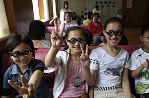 小朋友在何氏眼科醫(yī)院等待驗光。謝環(huán)馳