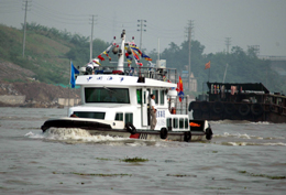 7月11日,一艘海巡艇在京杭運(yùn)河揚(yáng)州汪家窯水域巡航。受淮河泄洪影響,京杭運(yùn)河揚(yáng)州段從7月11日起全線實(shí)施汛期水上交通管制,揚(yáng)州地方海事部門已組織海巡艇及防汛物資進(jìn)入現(xiàn)場,對(duì)汪家窯等重點(diǎn)水域?qū)嵭腥旌蜓埠,確保汛期過往船舶的航行安全。 |