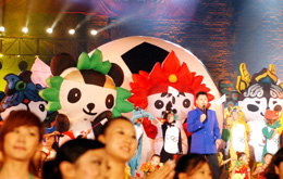 在迎接2008年奧運(yùn)會(huì)一周年倒計(jì)時(shí)之際,秦皇島賽區(qū)在山海關(guān)舉行慶典活動(dòng)。本報(bào)記者:石倩倩