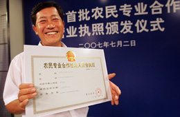 上海崇明三星柑桔專業(yè)合作社的法定代表人茅永新領(lǐng)到營業(yè)執(zhí)照。 |