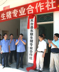 浙江天臺縣工商局工作人員為天臺縣東聯(lián)生豬專業(yè)合作社掛牌。(本報資料照片) | 記者在長三角各地采訪農(nóng)民專業(yè)合作社時,上海市農(nóng)委人士介紹的一個小細(xì)節(jié)讓人很受啟發(fā):過去農(nóng)民對外簽合同,類似“一打”、“一捆”之類的“模糊”用詞常常出現(xiàn),“弄得不好就起爭議”。現(xiàn)在合作社的合同越來越規(guī)范,政府提供的專業(yè)培訓(xùn)也說得清楚,要選擇“噸”這樣的精確單位。 “噸”、“捆”之別可以看出長三角農(nóng)民專業(yè)合作社“法人意識”正在不斷增強(qiáng)。特別是今年7月1日起《中華人民共和國農(nóng)民專業(yè)合作社法》正式實施,合作社的“法人地位”有法可依,成為國內(nèi)農(nóng)產(chǎn)品市場中的一大新興主體力量。