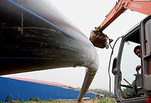 | 無錫鋪設(shè)治污管為太湖截污。新華社發(fā) 程炳洪