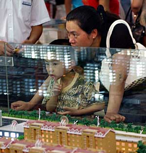 | 小戶型成為房博會(huì)焦點(diǎn)。購(gòu)房者在銀川房地產(chǎn)博覽會(huì)現(xiàn)場(chǎng)觀看樓盤(pán)模型。新華社記者 王鵬