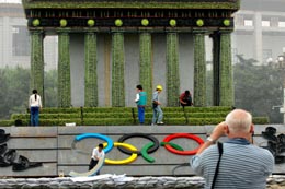 奧運景觀現身天安門 花壇主體結構搭建完畢