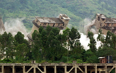 9月25日,位于三水區(qū)大塘鎮(zhèn)油金大橋旁的水泥廠被爆破拆除。當(dāng)日,廣東省佛山市三水區(qū)爆破拆除了3家高投入、高消耗、高污染和低水平、低效益(簡稱三高兩低)的水泥廠。計劃到2008年底,該區(qū)將拆除全部17家類似水泥廠,達(dá)到節(jié)能減排,保護(hù)環(huán)境的目的。