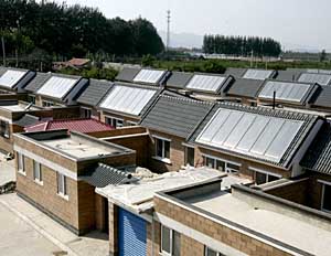| 北京在平谷區(qū)大力推廣太陽能新民居。新華社記者 陳建力 攝 |