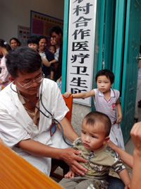廣西河池市用新農(nóng)合解決移民看病難問題。這是到村級(jí)衛(wèi)生所值班的醫(yī)生在移民安置區(qū)給一名兒童看病。 新華社記者:張愛林 攝