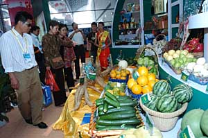 | 第四屆中國(guó)-東盟博覽會(huì)上,參會(huì)人員在關(guān)注中國(guó)的農(nóng)產(chǎn)品。新華社記者 劉廣銘