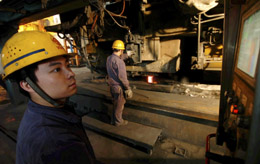 吉林省通化鋼鐵集團(tuán)結(jié)構(gòu)調(diào)整產(chǎn)品升級技術(shù)改造工程日前正式竣工投產(chǎn)。截止到目前,通鋼股份公司大型化改造的主體工程已陸續(xù)改造完成并投產(chǎn),600萬噸鋼生產(chǎn)能力已全面形成,該工程的竣工投產(chǎn)標(biāo)志著通鋼集團(tuán)結(jié)構(gòu)調(diào)整和產(chǎn)品升級登上了一個(gè)新的臺階。2007年1至9月份,通鋼集團(tuán)實(shí)現(xiàn)工業(yè)總產(chǎn)值138.9億元,比去年同期增長24.75%。圖為工人正在生產(chǎn)線上緊張忙碌。 |