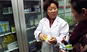| 隨著寧夏城鎮(zhèn)居民基本醫(yī)療保險(xiǎn)試點(diǎn)的啟動(dòng),城鎮(zhèn)居民在社區(qū)衛(wèi)生服務(wù)機(jī)構(gòu)就可選購(gòu)一千余種“零利潤(rùn)”藥品。圖為銀川市永豐社區(qū)衛(wèi)生服務(wù)站的工作人員在為社區(qū)居民取藥。新華社記者