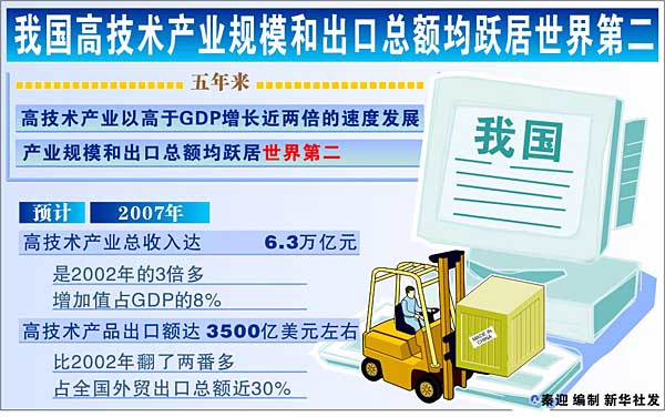 我國高技術(shù)產(chǎn)業(yè)規(guī)模和出口總額均躍居世界第二